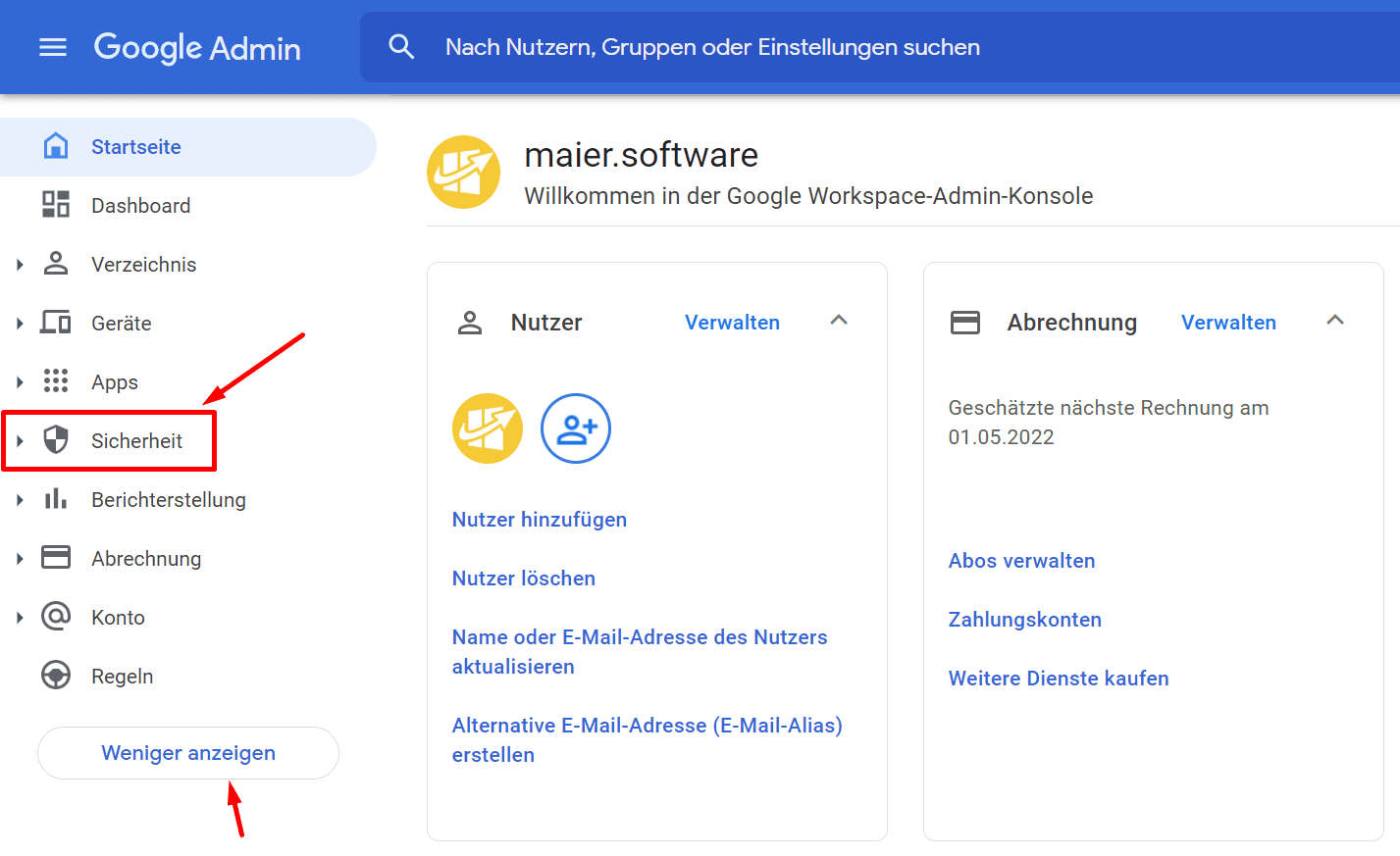 Öffnen Sie https://admin.google.com und loggen Sie sich ein.