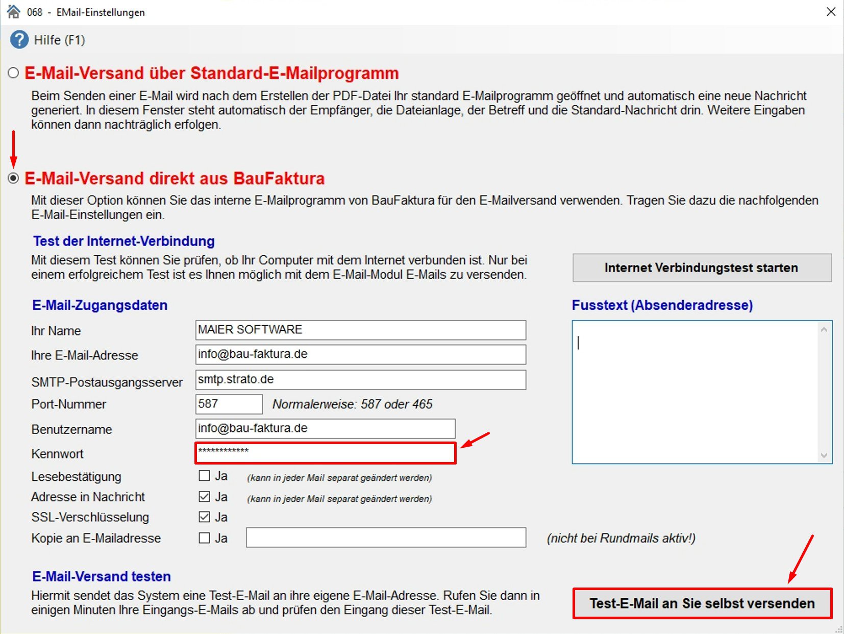 Schritt 3 – Email Einstellungen in baufaktura vornehmen